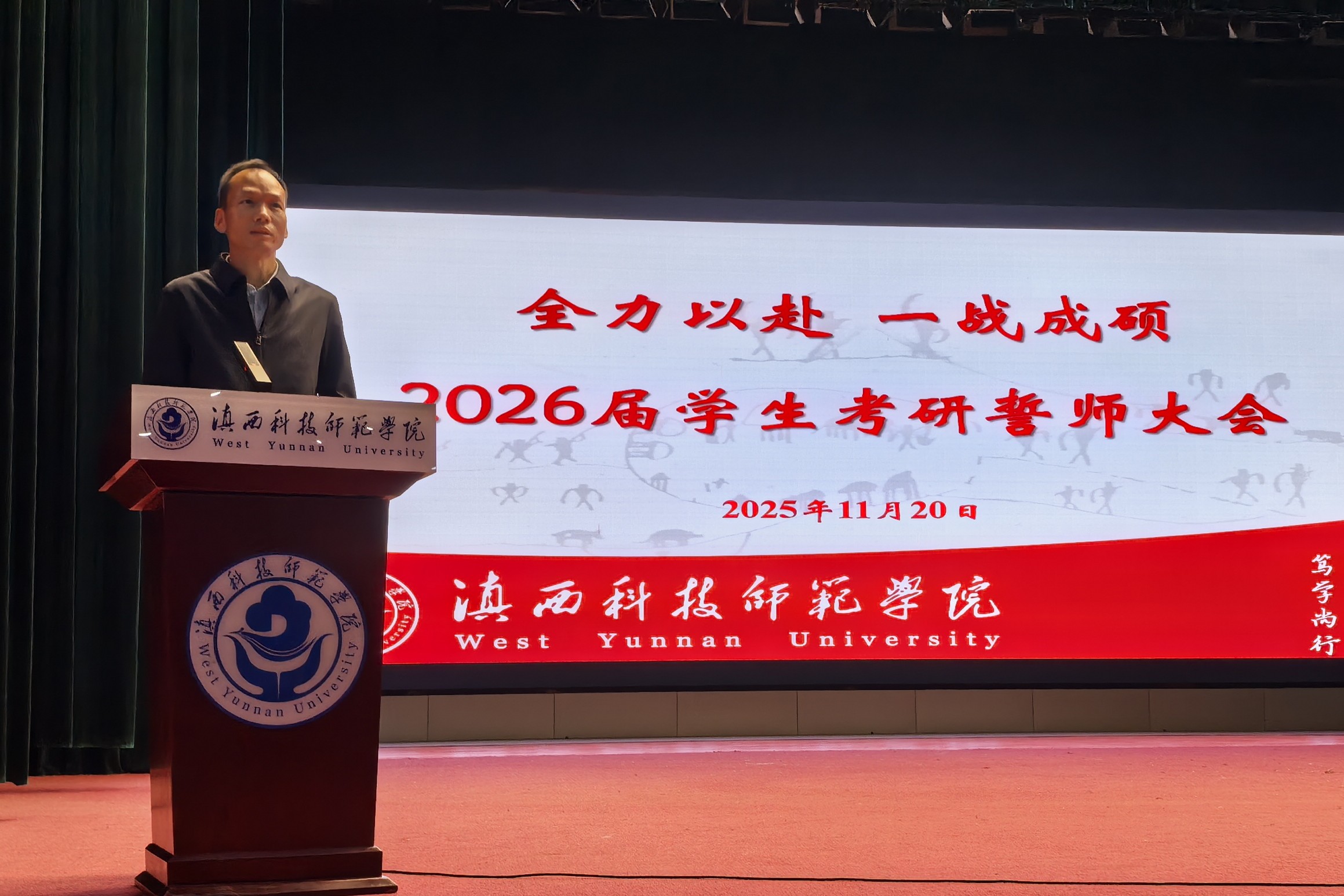 “考研是一场青春的淬炼,是一次梦想的远征,更是你们用知识改写命运、用奋斗定义未来的重要抉择,这份敢于挑战自我、勇攀高峰的勇气,值得全校师生为你们点赞!”施勇为全体考研学生寄语。他指出,学校始终将考研工作作为培育优良学风、提升人才培养质量、促进学生高质量就业的重要抓手。希望同学们秉承“立德修身、笃学尚行”的校训,弘扬“开放包容、追求卓越”的滇院精神,将个人理想融入国家发展大局,把考研深造作为服务国家战略需求、实现人生价值的重要阶梯。针对最后30天的冲刺阶段,他叮嘱同学们要科学规划时间,注重劳逸结合,在教师指导下制定个性化复习方案,切实提高备考效率,最终不负众望、一战而胜、金榜题名。